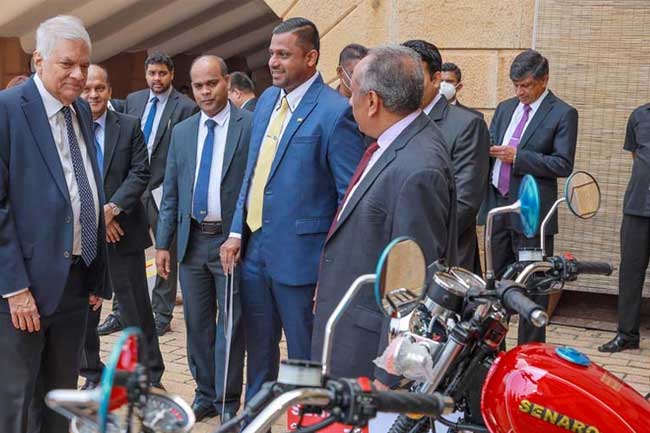 கைத்தொழில் அமைச்சினால் அறிமுகப்படுத்தப்பட்ட, இலங்கையில் வாகன உற்பத்தி, ஒன்றிணைத்தல் மற்றும் உதிரிப்பாக உற்பத்திக்கான நிலையான செயற்பாட்டு நடைமுறையின் (SOP) பிரகாரம் உற்பத்தியை ஆரம்பித்த செனாரோ (SENARO GN 125) புதிய மோட்டார் சைக்கிள்களை ஜனாதிபதி அலுவலகத்திற்கு கையளிக்கும் நிகழ்வு இன்று (15) முற்பகல் இடம்பெற்றது.