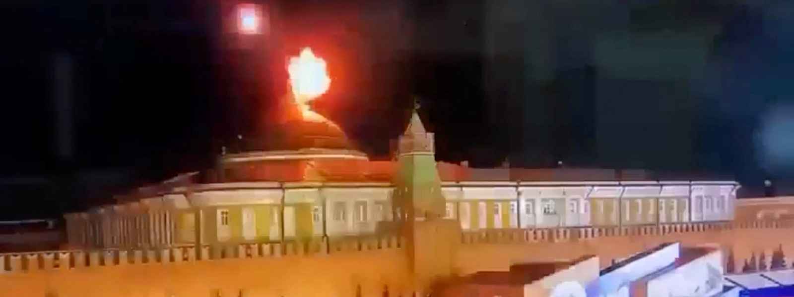 ஒரு சிறிய வெடிப்புடன் கிரெம்லினில் ஏதோ பறப்பது போன்ற காட்சிகள் சமூக வலைத்தளங்களில் பகிரப்படுகின்றன.