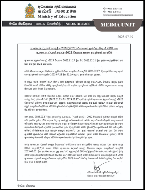 எனவே மேற்குறிப்பிடப்பட்ட கால அவகாசத்துக்குள் விண்ணப்பங்களை சமர்ப்பிக்க வேண்டும். எந்தவொரு காரணத்துக்காகவும் முதன்முறையாக பரீட்சைக்கு தோற்றவுள்ளோருக்கு இந்த கால அவகாசம் நீடிக்கப்பட மாட்டாது.