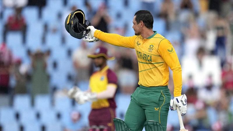 தொடர்ந்து ஆடிய தென் ஆப்பிரிக்க அணியில் குவிண்டன் டி காக் 44 பந்துகளில் 9 பவுண்டரிகள் 8 சிக்சர்களுடன் 100 ரன்களை விளாசினார். ரீசா ஹென்றிக்ஸ், 28 பந்துகளில் 11 பவுண்டரிகள் 2 சிக்சர்களுடன் 68 ரன்கள் விளாசினார். கடைசியில் அய்டன் மார்க்ரம் 38 ரன்களை விளாச 18.5 ஓவர்களில் 259/4 என்று உலக சாதனை வெற்றி பெற்று தொடரை இதுவரை 1-1 என்று சமன் செய்துள்ளது.