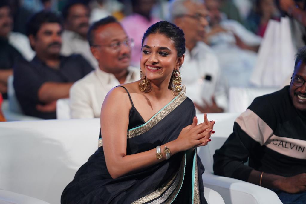 மாரி செல்வராஜ் இயக்கத்தில் உதயநிதி ஸ்டாலின் நடிக்கும் ‘மாமன்னன்’ படத்தின் இசை மற்றும் ட்ரெய்லர் வெளியீட்டு விழா சென்னை நேரு உள்விளையாட்டு அரங்கில் தொடங்குவதற்கு முன்பு பேசிய நடிகை கீர்த்தி சுரேஷ், “நீண்ட நாள் கழித்து தமிழில் எனக்கு ஒரு ரிலீஸ். பெரிய டீமுடன் வேலை பார்த்திருக்கிறேன். படம் வேற மாதிரி இருக்கும். படத்தில் நான் ஒரு கம்யூனிஸ்ட். வித்தியாசமான படமாக எல்லோருக்கும் பிடிக்கும் என நம்புகிறேன்.