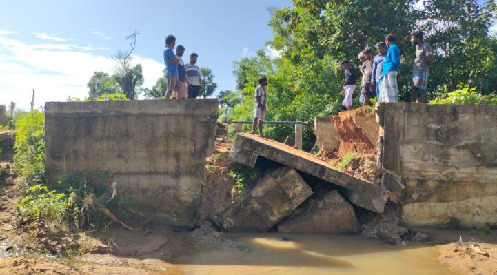 கிளிநொச்சி கரைச்சி பிரதேச செயலாளர் பிரிவிற்குட்பட்ட பாரதிபுரம் கிராமத்தில் புதிதாக அமைக்கபட்ட பாலம் உடைந்து விழுந்ததில் மோட்டார் சைக்கிளில் பயணித்த இருவர் காயமடைந்த நிலையில் சிகிக்சை பெற்று வருகின்றனர்.