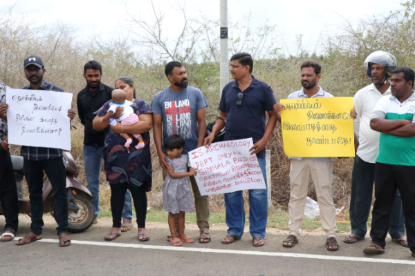 திருகோணமலை இலுப்பைக்குளம் பகுதியில் பொரலுகந்த ரஜமகா விகாரை அமைக்கப்படவுள்ளதை எதிர்த்து இன்று (03) மனித சங்கிலிப் போராட்டமொன்று திருகோணமலை, சாம்பல் தீவு பாலத்துக்கு அருகில் முன்னெடுக்கப்பட்டது. இப்போராட்டத்தில் பாராளுமன்ற உறுப்பினர்களான கஜேந்திரகுமார் பொன்னம்பலம், செல்வராஜா கஜேந்திரன் ஆகியோருடன் பெருமளவான மக்கள் கலந்துகொண்டனர். இதன்போது குறித்த விகாரை அமைக்கப்படவுள்ளதை எதிர்க்கும் வகையில், “பௌத்தர்கள் இல்லாத இடத்தில் பௌத்த விகாரை எதற்கு?”, “பெரியகுளம் விகாரை கட்டுமானத்தை உடனடியாக நிறுத்து”, “தொல்லியல் திணைக்களம் பௌத்தத்துக்கு மட்டுமா?”, “தொல்லியல் திணைக்களமே இனவாதத்தை தூண்டாதே”…