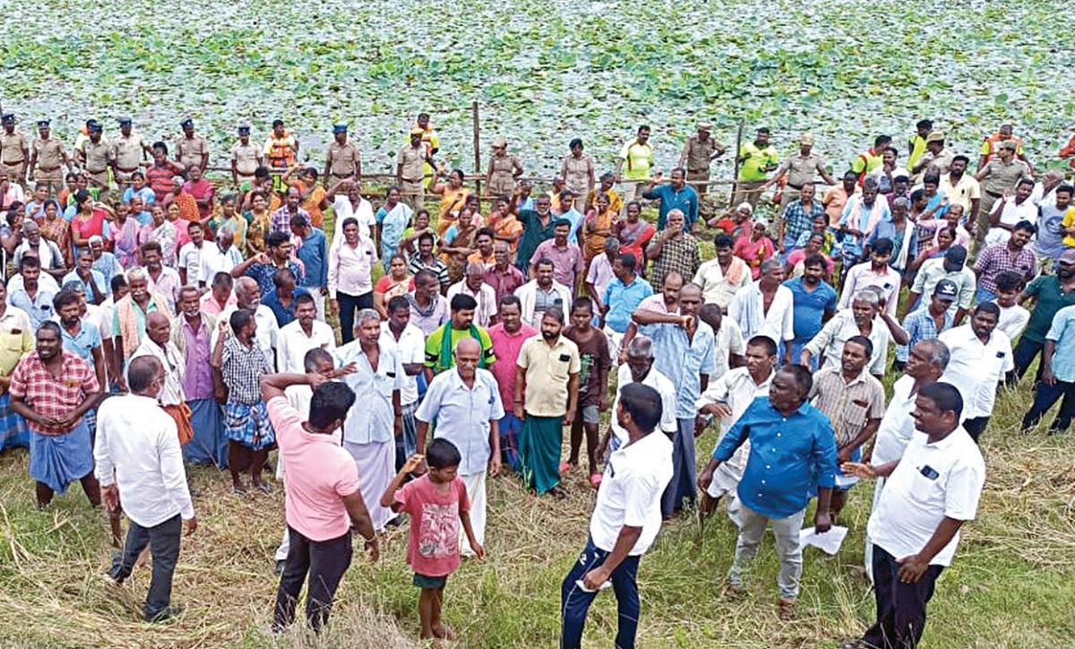 இதற்காக தொடர்ந்து நடந்து வரும் போராட்டம் நேற்று முன்தினம் 300-வது நாளை எட்டியது. நீராதாரங்களை அழித்து விமான நிலையம் அமைக்கப்படுவதை சுட்டிகாட்டும் வகையில் ஏரி, குளம், குட்டை, கால்வாய் உள்ளிட்டநீர்நிலைகளையும், நீர் ஆதாரங்களையும் அழிக்கும் செயலுக்கு கண்டனம் தெரிவிக்கும் வகையிலும் ஏகனாபுரத்தில் உள்ள வயல்ஏரியில் இறங்கி பொதுமக்கள்போராட்டத்தில் ஈடுபட்டனர்.